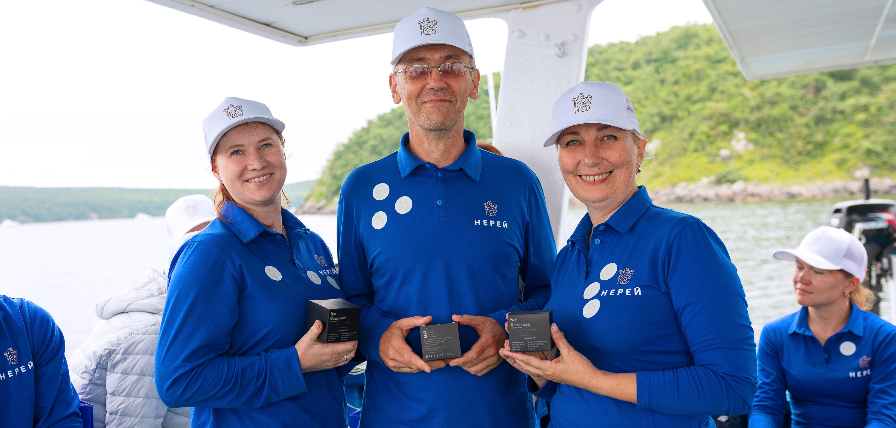 Удачная рыбалка переросла в праздничный обед. Наши повара приготовили наивкуснейшие рыбные блюда: наваристая ароматная уха, собственного посола нерка, горбуша под нежнейшим маринадом и другие рыбные угощения. Много теплых слов сказано приморским рыбакам, чей богатый улов обеспечивает неизменное качество дальневосточной рыбы, великолепный вкус которой знают во всем мире. Ну а наши сотрудники сильны не только в рыбалке, но и в знаниях. Самые разнообразные вопросы ожидали нереевцев в рамках конкурса «Рыбная викторина». Здесь нужно было угадать внешний вид, отличительные особенности дальневосточных рыб и даже виды разделки. Правильные ответы были получены на все загадки, но самые невероятные познания показал Антон Юргилас, уверенно собрав максимальное количество медалей за верные ответы на своей груди. За что был поощрен памятными подарками. Призы и в этом конкуре щедро дарились каждому, кто продемонстрировал отличные знания.