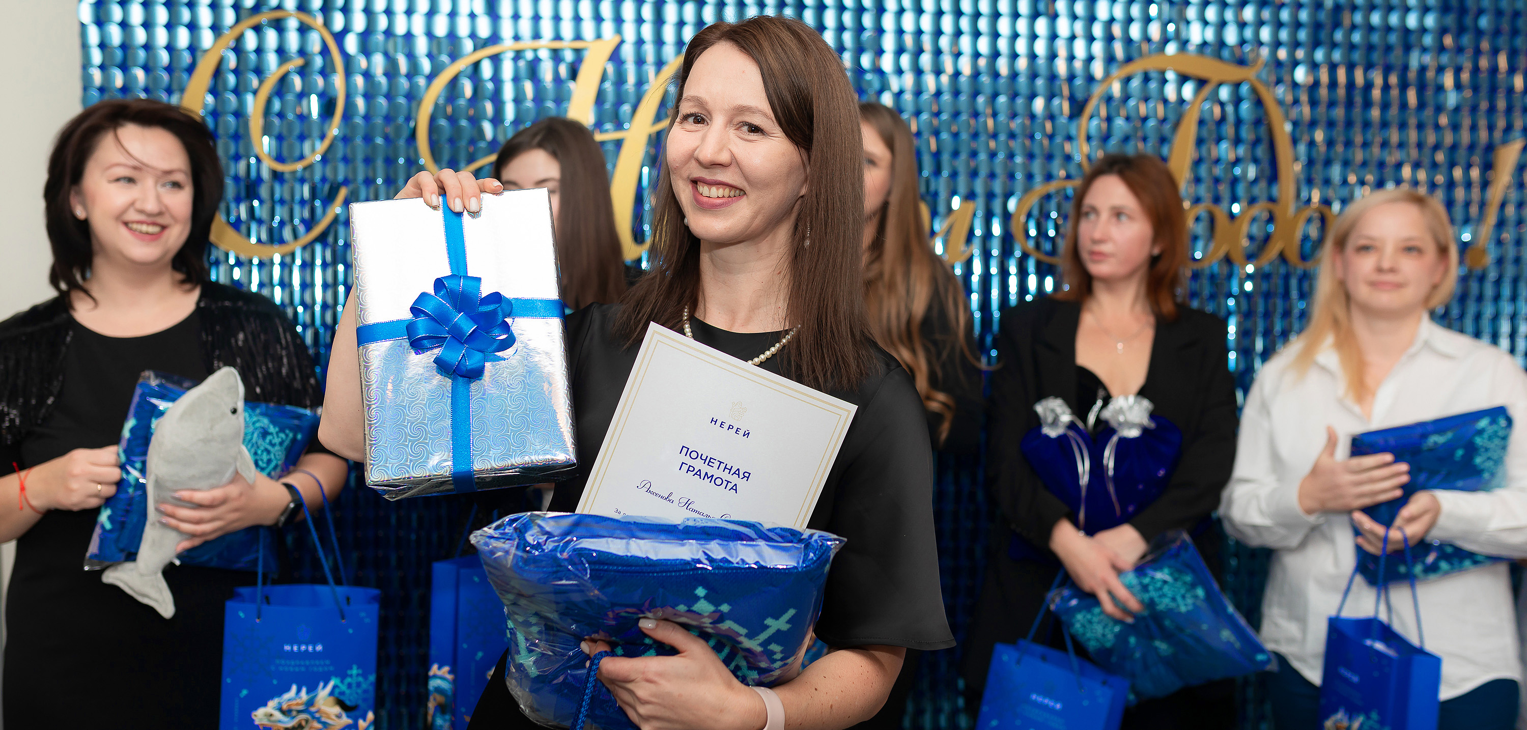 Для поздравления и награждения приглашались работники по структурным подразделения. Много теплых слов сказано в адрес каждого отдела. Все сотрудники получили памятные подарки, а для детей подготовлены сладкие наборы. Новоиспеченные Нереевцы впервые награждались нашим талисманом - дельфином и делились своими впечатлениями о работе в компании.
