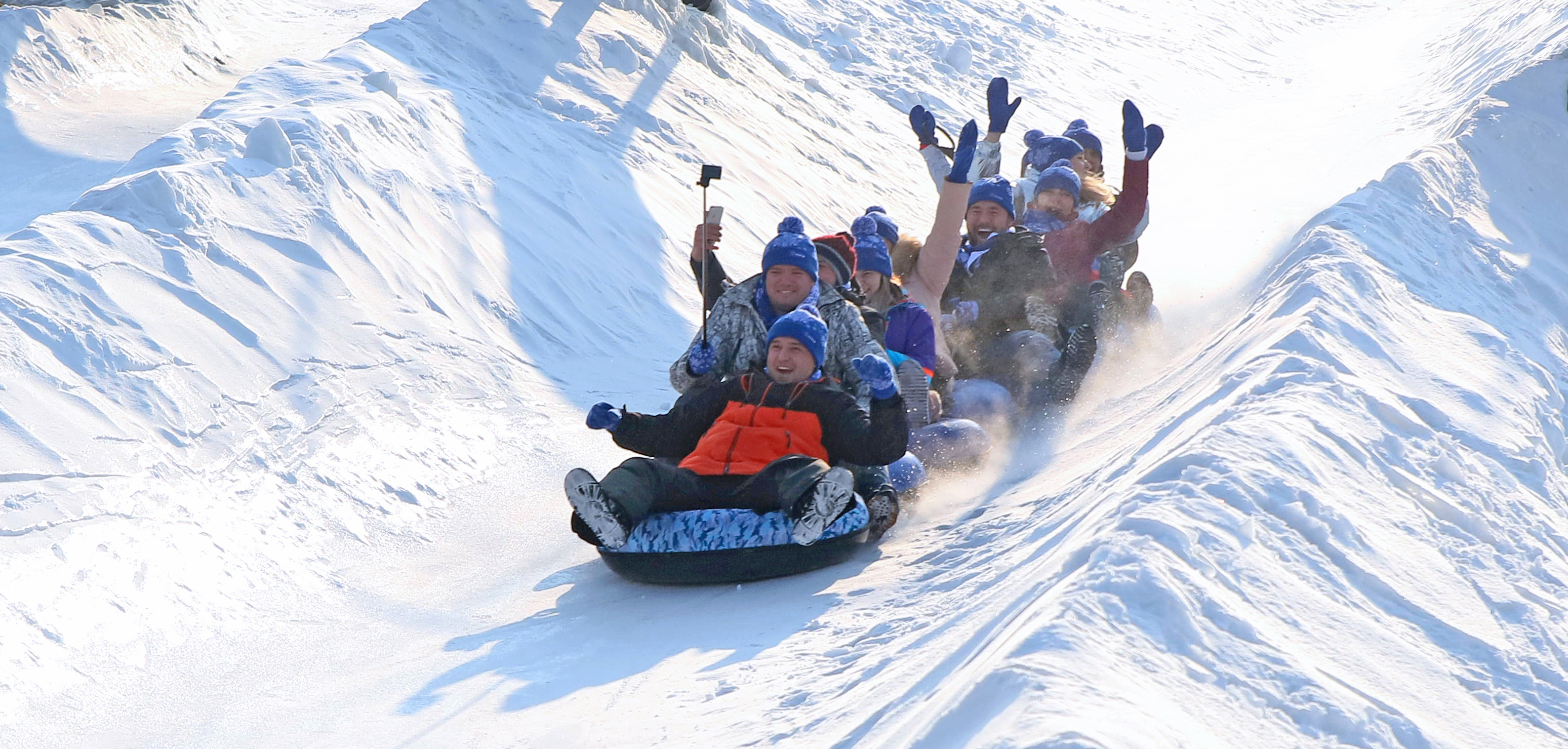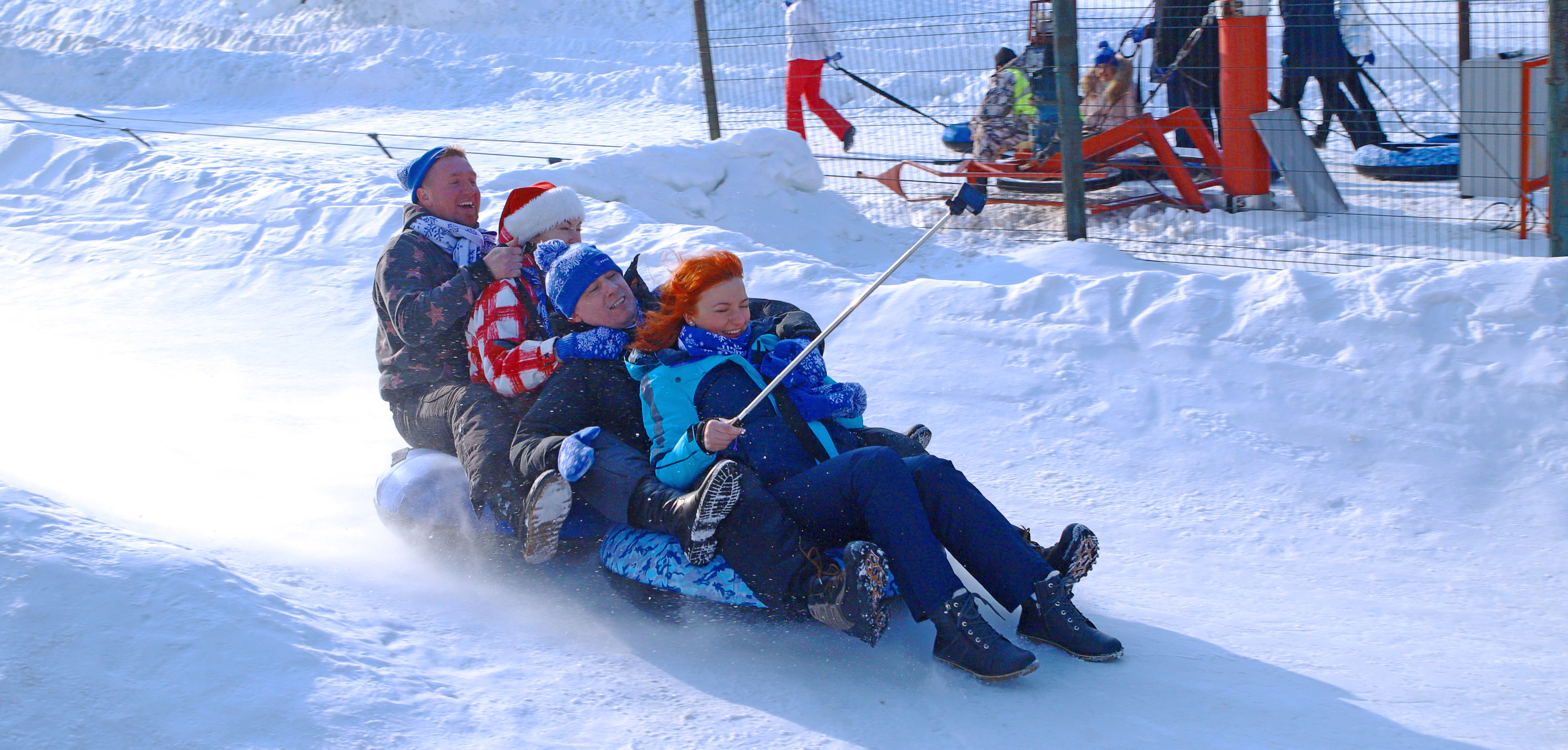 В этот день мы катались на тюбингах всей нашей большой командой. Танцевали, пели песни у костра. Ну, хорошо, не у костра, а у мангала). Наслаждались вкуснейшими блюдами от нашего шеф-повара - Кристина готовила все то, чем так здорово лакомиться зимой, да еще и на природе: ароматную шурпу, запеченную баранину, аппетитные пирожки с мясом, фруктовый пирог и многое другое!