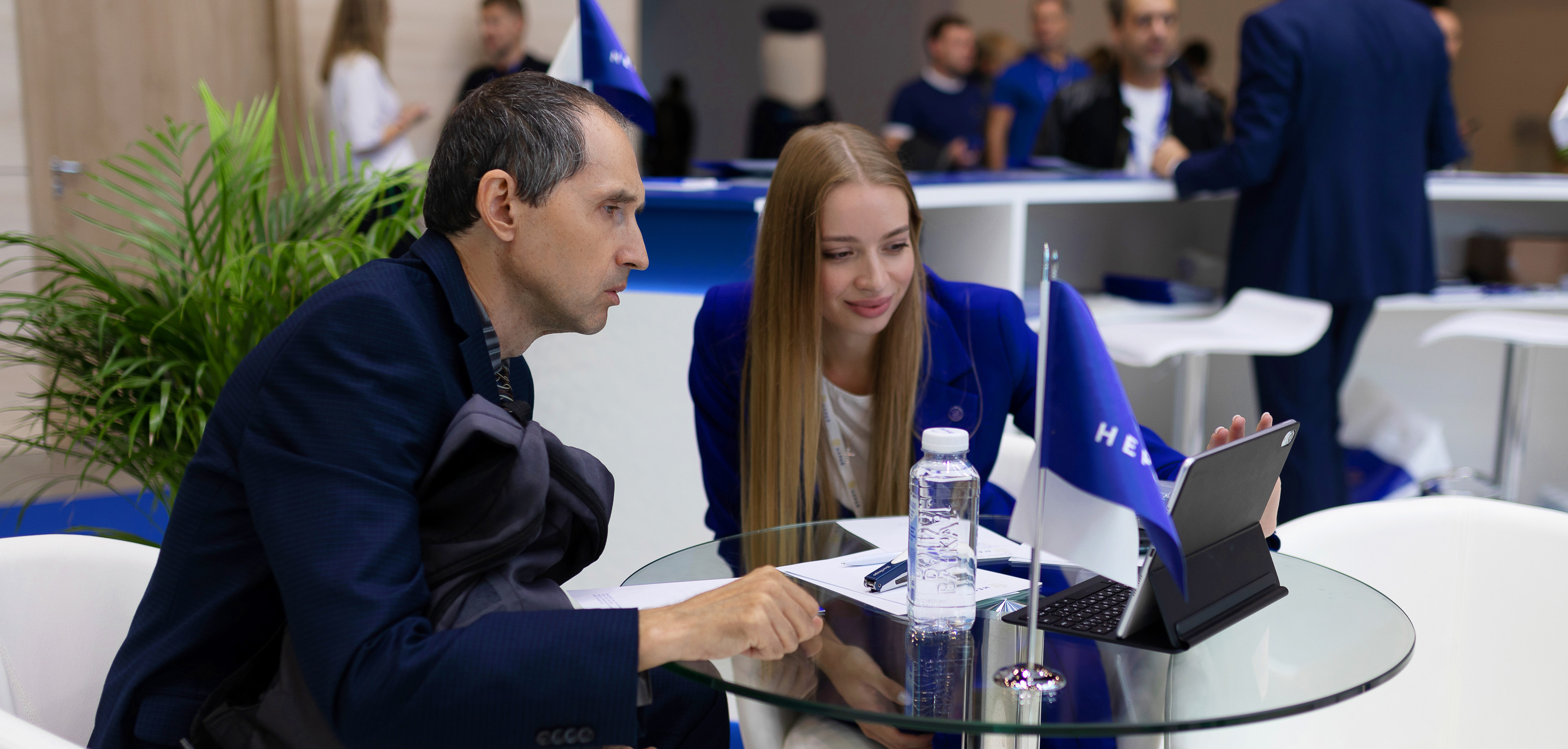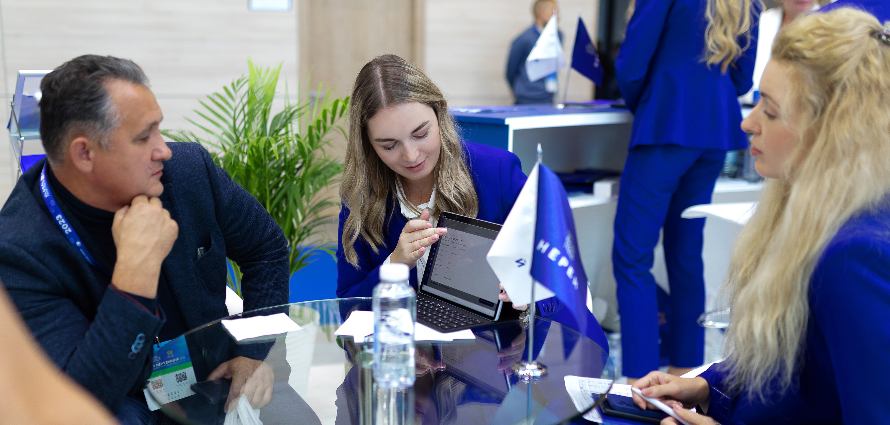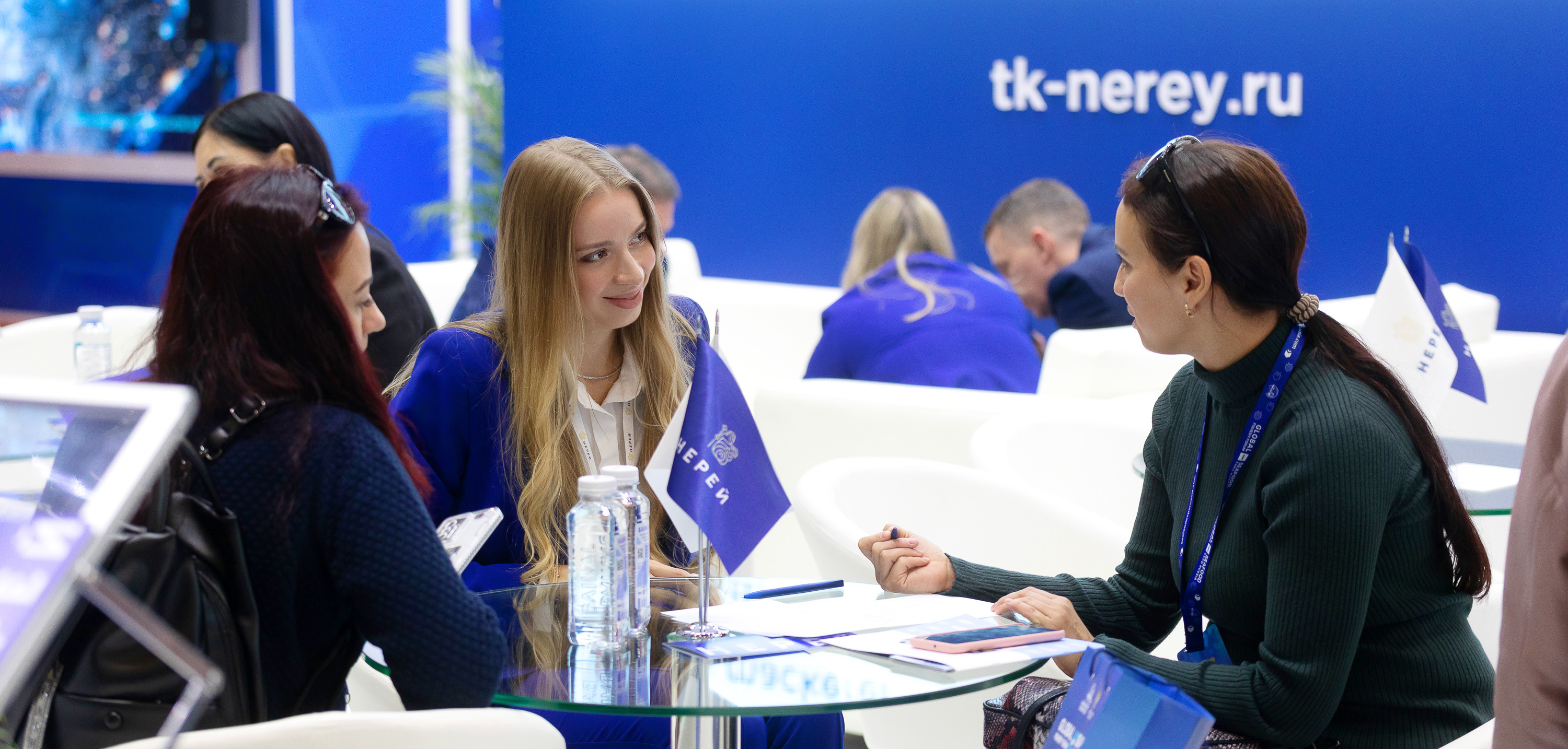 Корпоративный стиль выдержан во всем – в раздаточном материале, фирменных подарках клиентам, внешнем виде сотрудников. Специально для выставки по эксклюзивному дизайну были пошиты деловые костюмы для прекрасной половины коллектива. Нереевские девушки получили самые щедрые комплименты и искреннее восхищение.