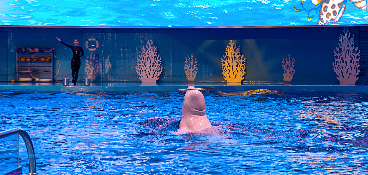 Спустя 40 минут пути, мы прибыли в Океанариум и отправились смотреть “Шоу дельфинов”.