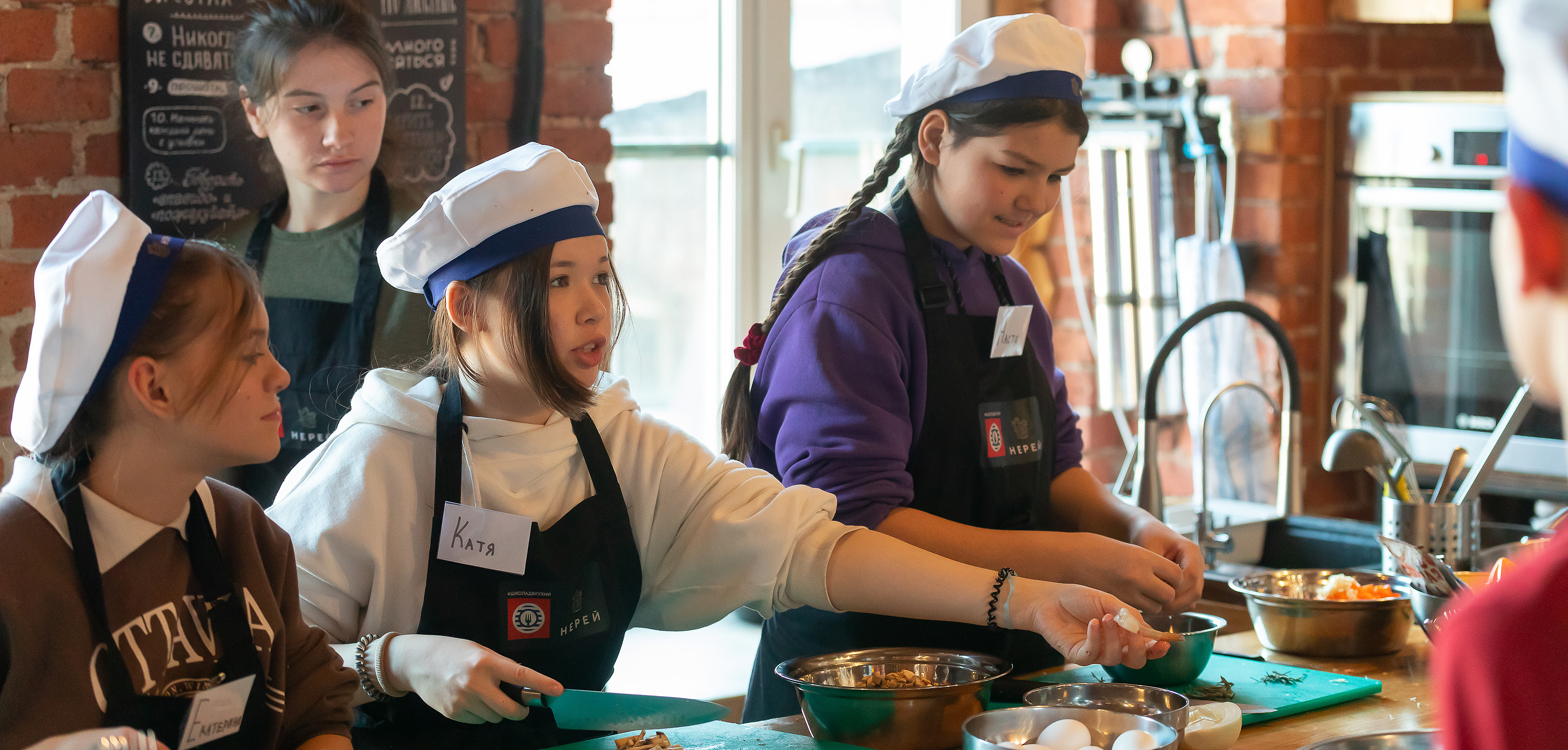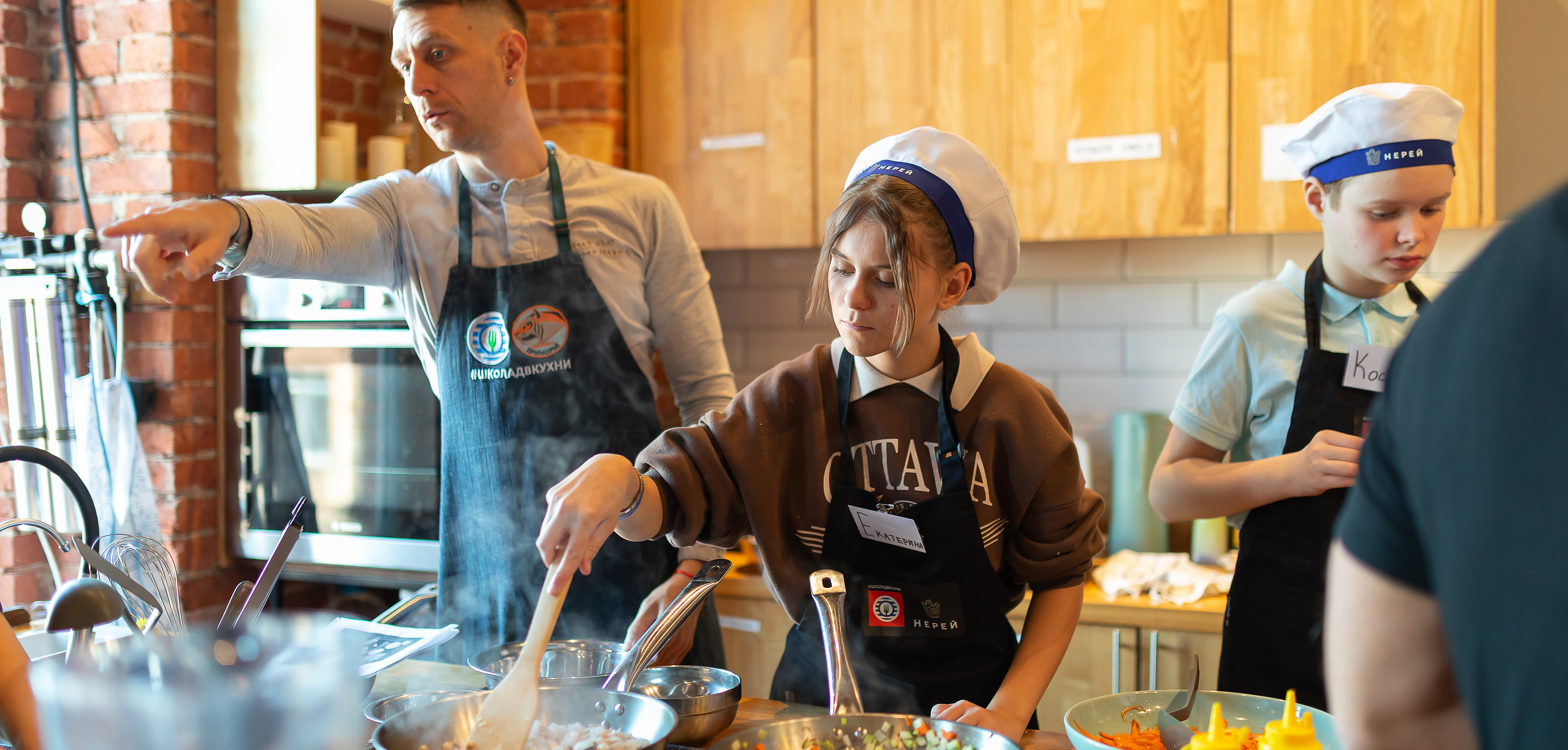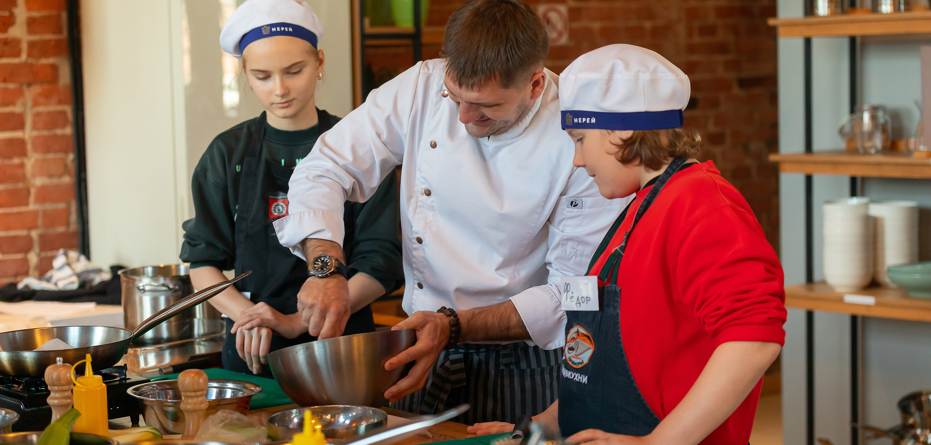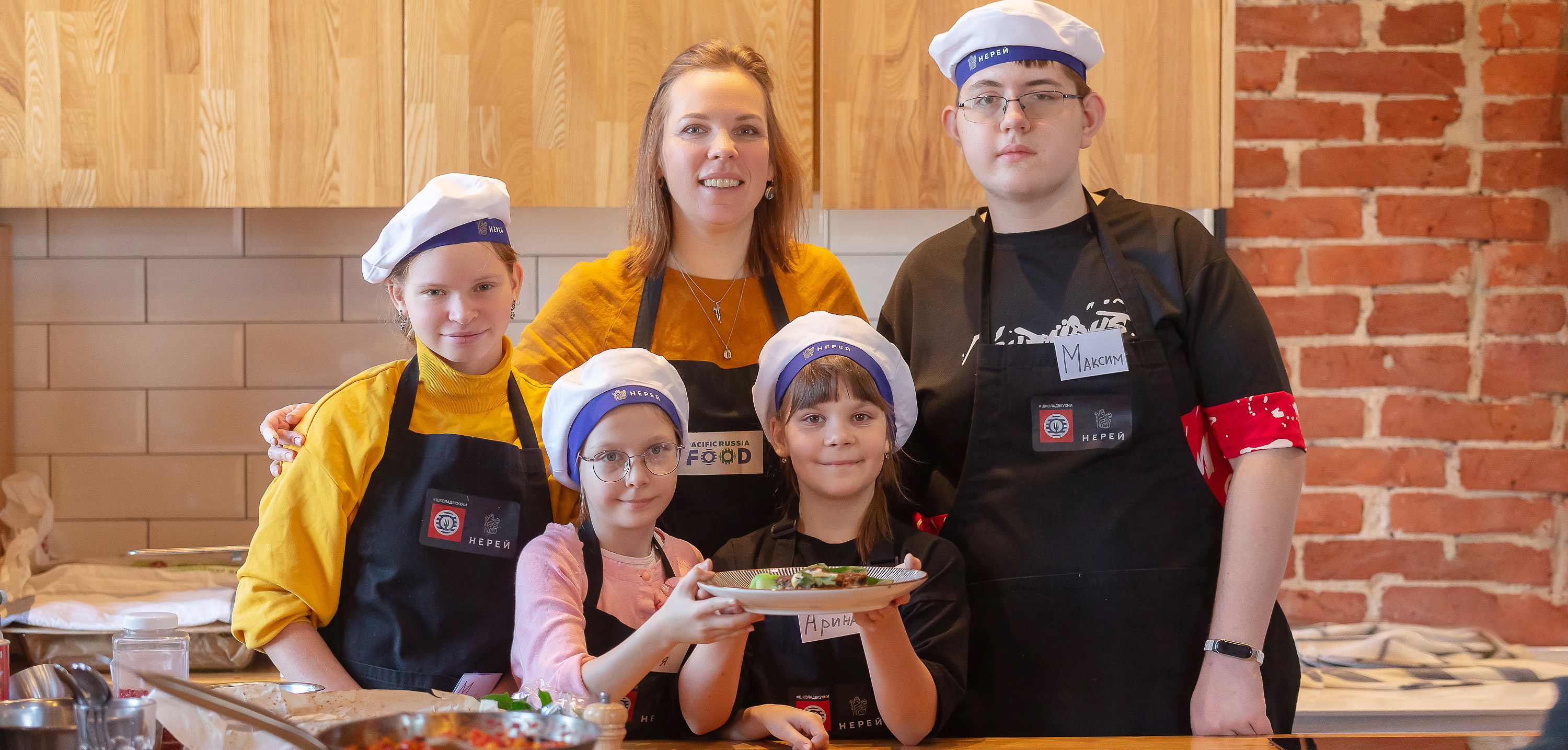 Кулинарный клуб для подростков – это совместный проект компании «Нерей» и Школы дальневосточной кухни, задача которого была одновременно проста и сложна – научить подрастающее поколение готовить рыбу. И не просто научить ее готовить, но и познакомить с богатством вкусов и безмерной пользой продукта и постараться включить ее в семейный рацион питания как одно из любимых блюд.