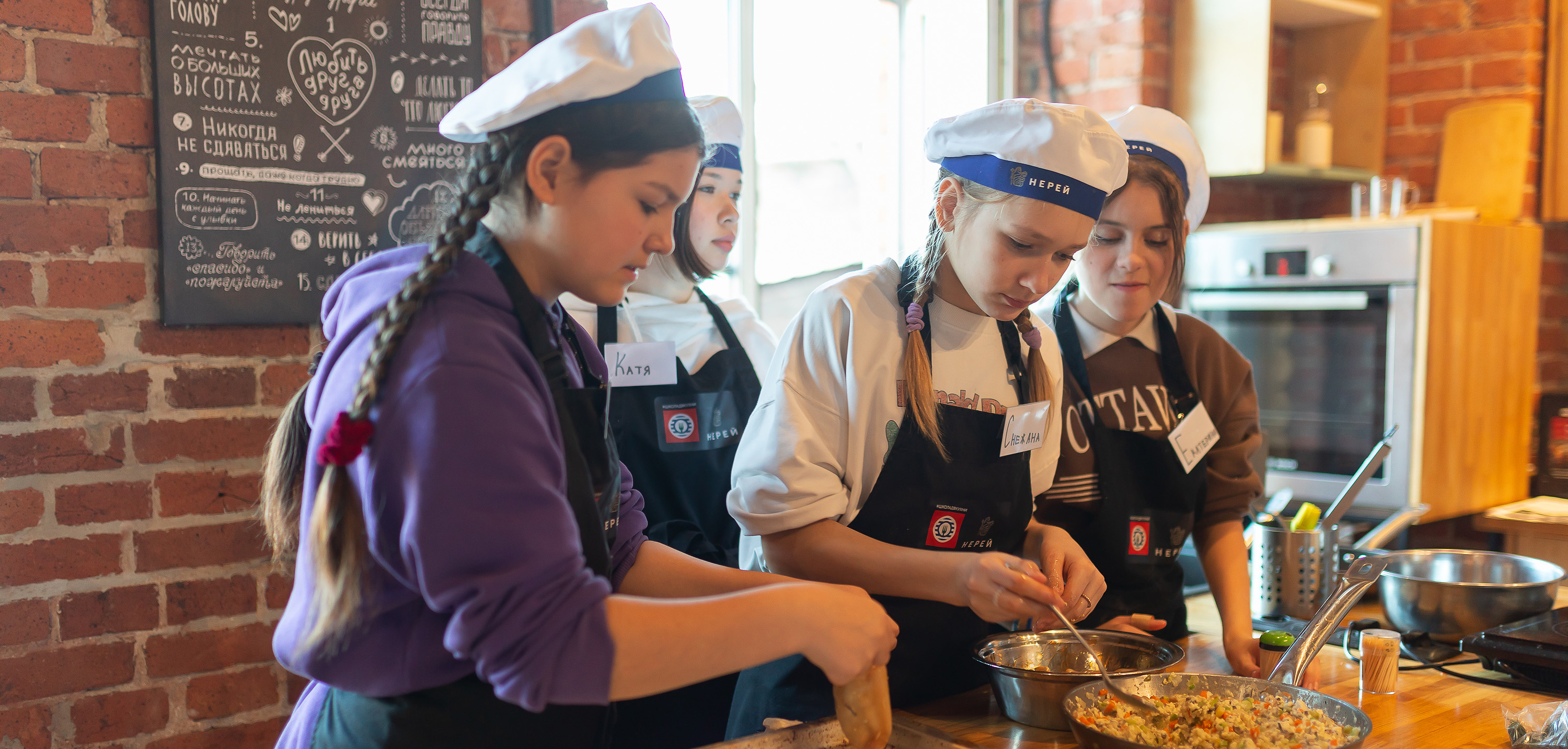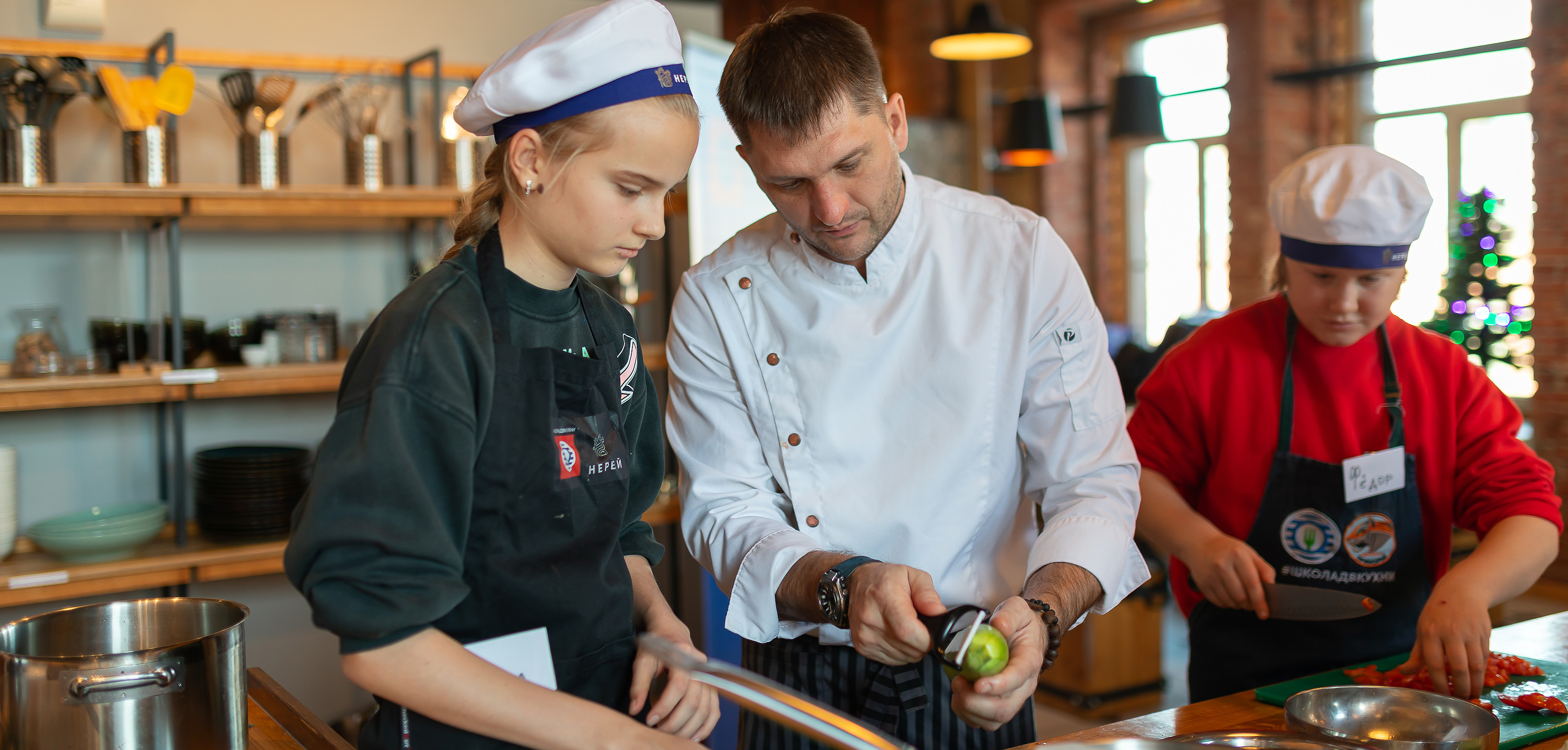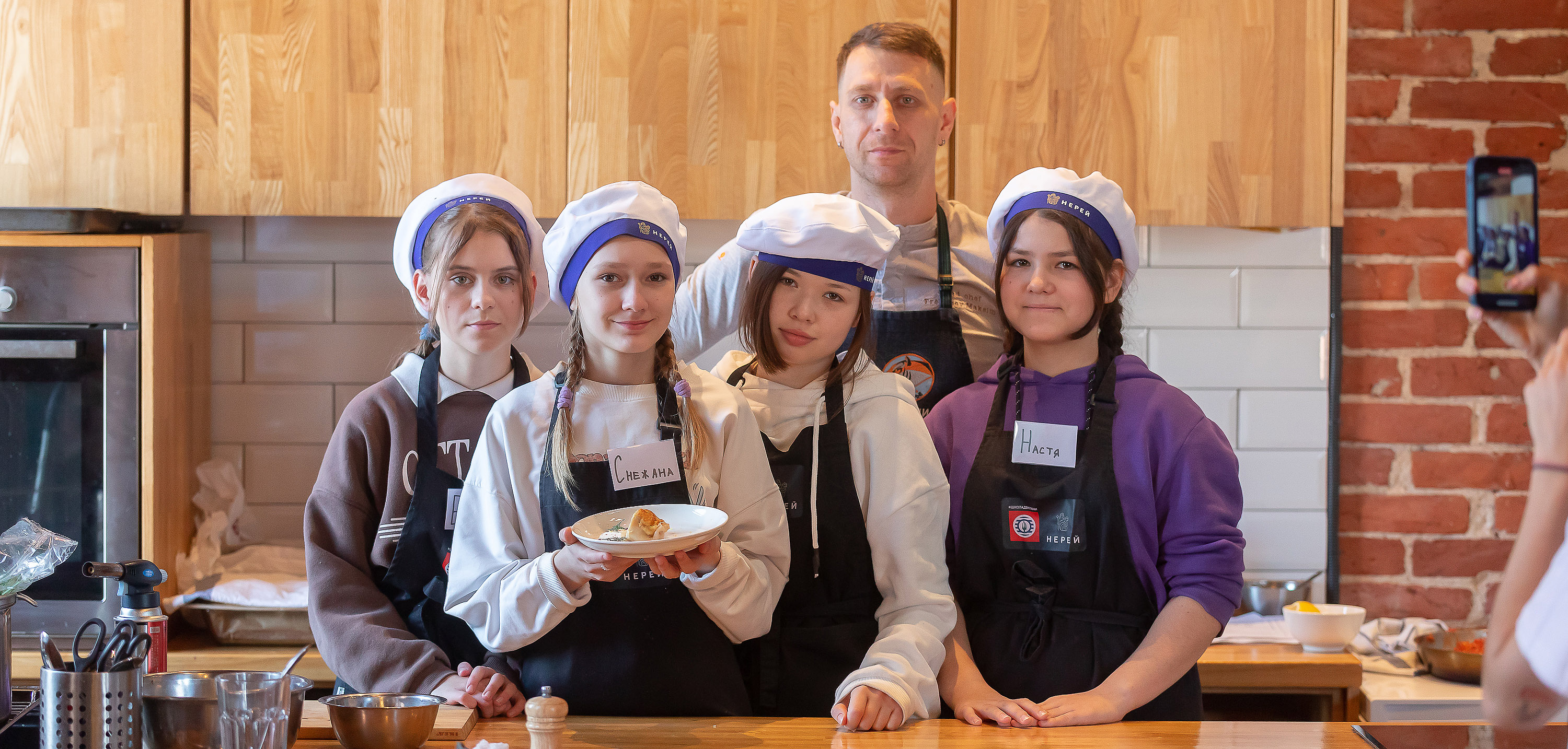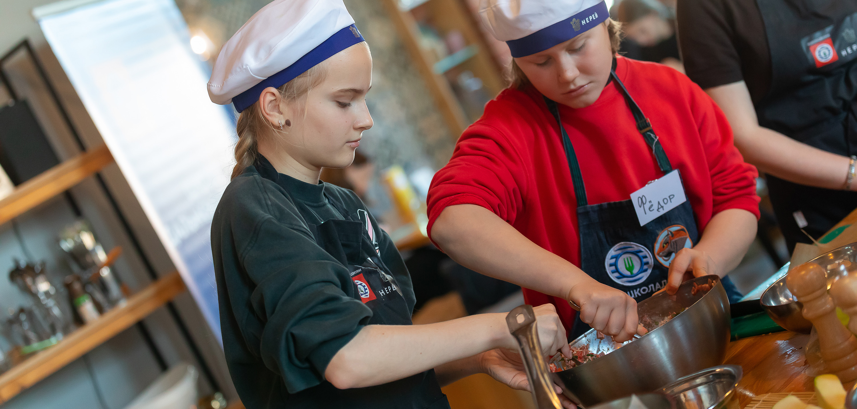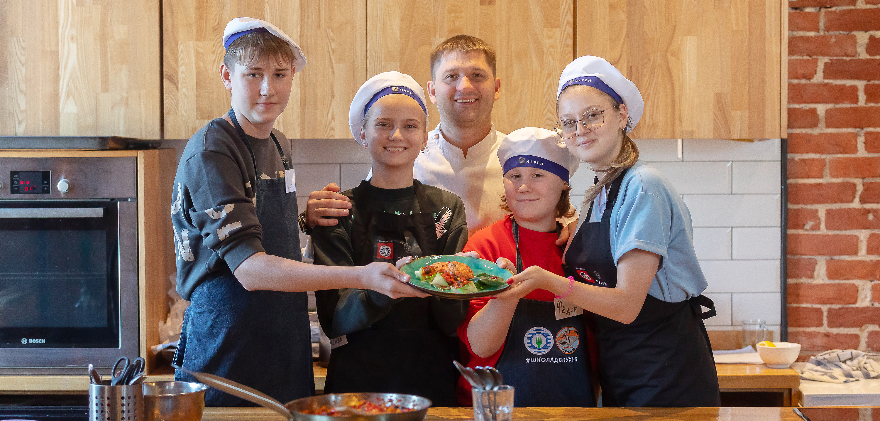 Кулинарный клуб для подростков – это совместный проект компании «Нерей» и Школы дальневосточной кухни, задача которого была одновременно проста и сложна – научить подрастающее поколение готовить рыбу. И не просто научить ее готовить, но и познакомить с богатством вкусов и безмерной пользой продукта и постараться включить ее в семейный рацион питания как одно из любимых блюд.