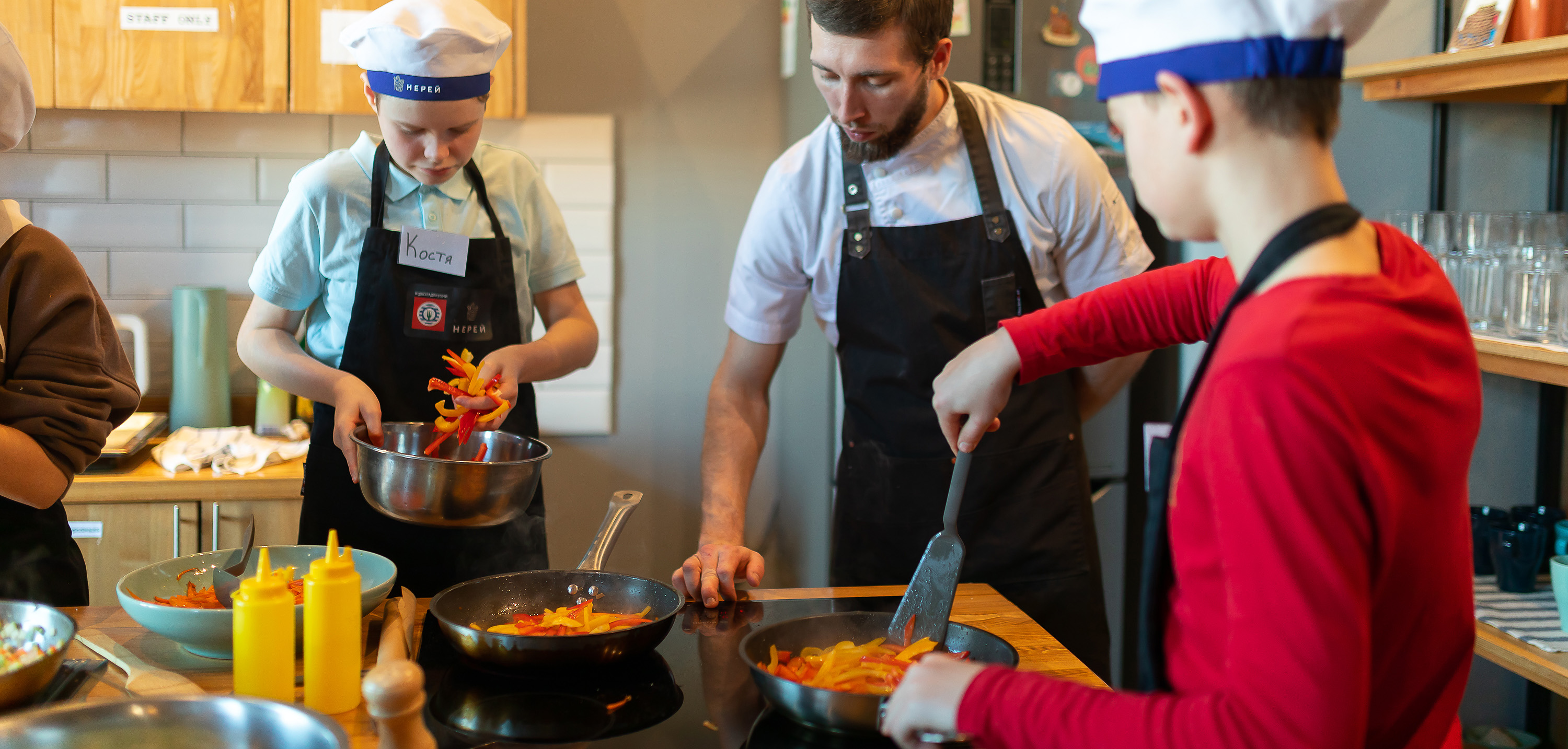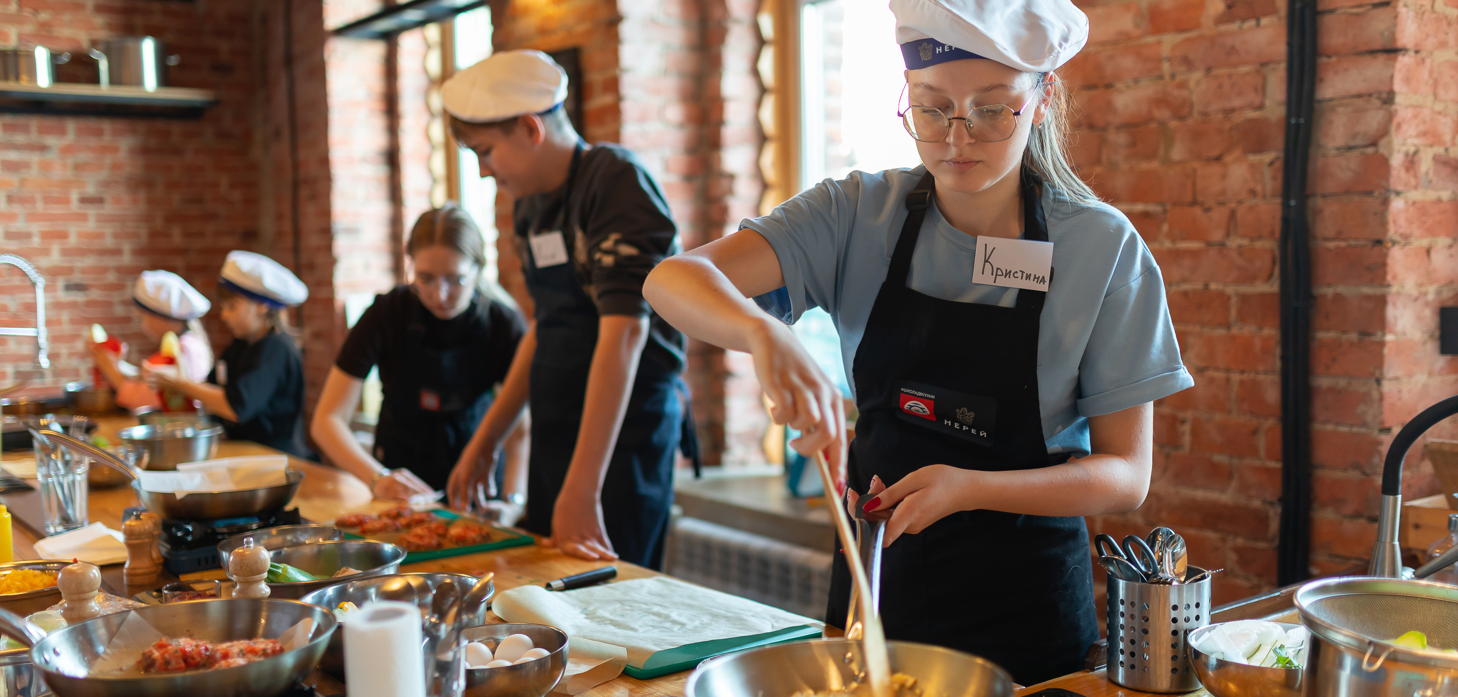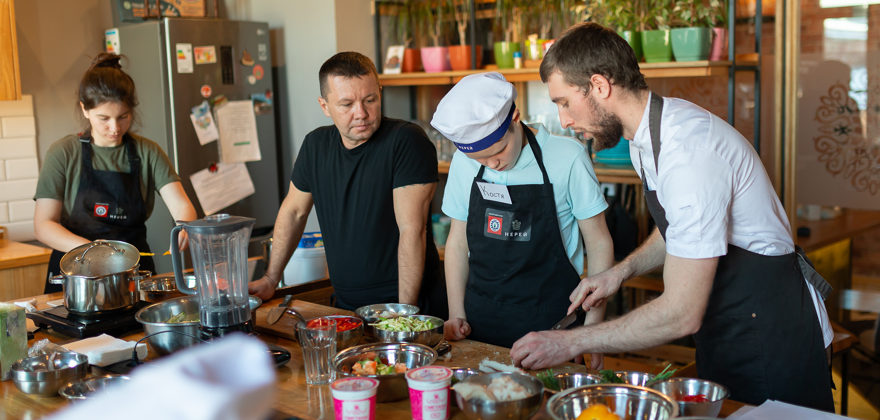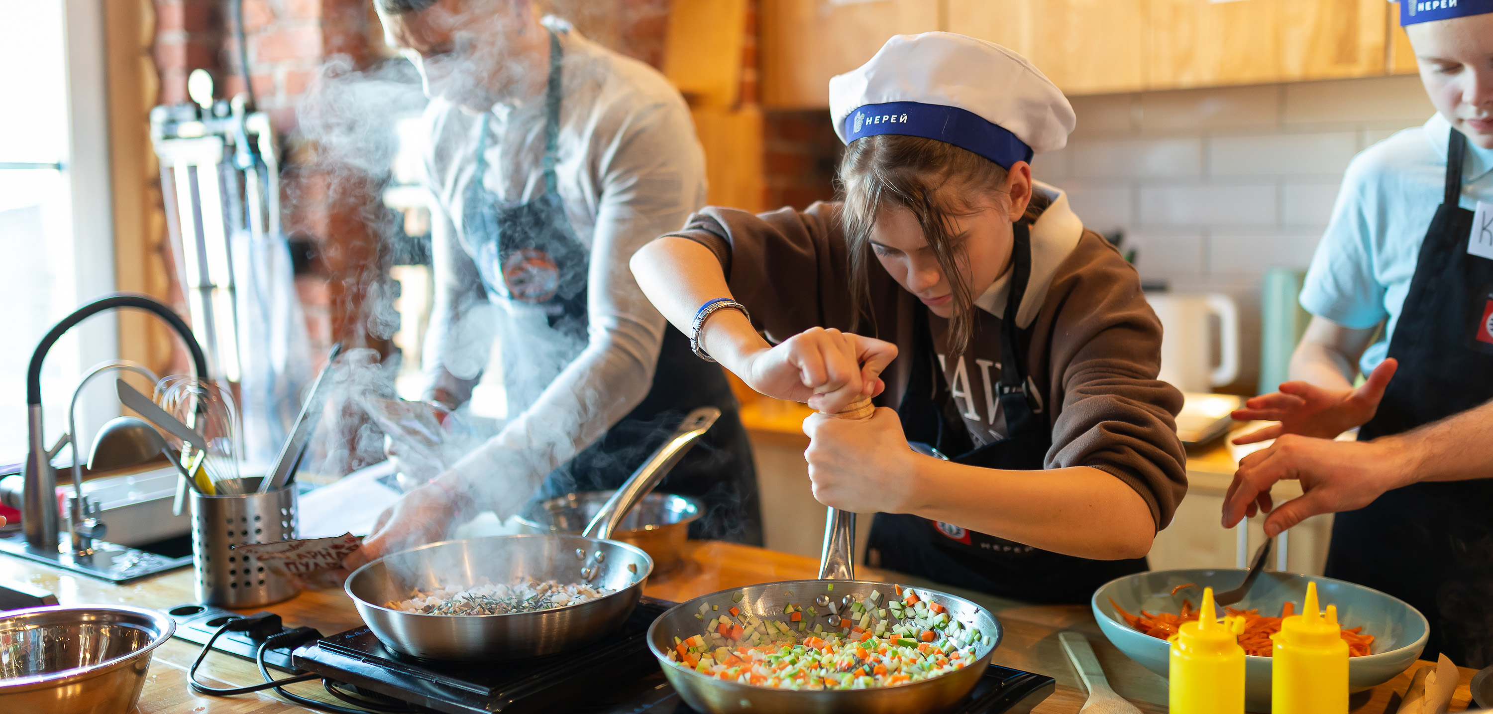 Кулинарный клуб для подростков – это совместный проект компании «Нерей» и Школы дальневосточной кухни, задача которого была одновременно проста и сложна – научить подрастающее поколение готовить рыбу. И не просто научить ее готовить, но и познакомить с богатством вкусов и безмерной пользой продукта и постараться включить ее в семейный рацион питания как одно из любимых блюд.